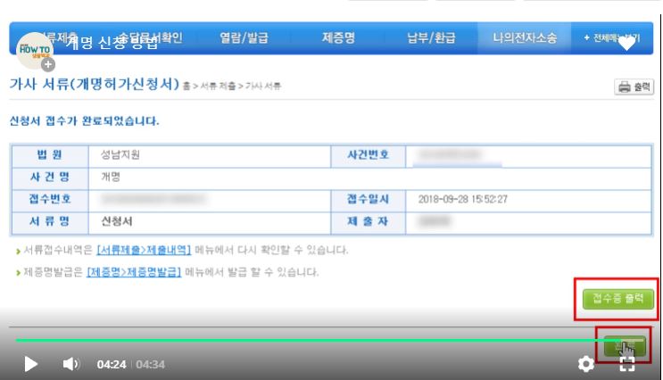 접수증은 접수증 출력을 클릭하여 보관하면 됩니다.