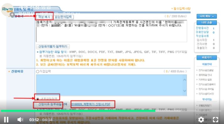 신청이유는 직접입력을 따로 작성하지 않더라도 개명허가 신청서 파일을 업로드 할 수 있습니다.