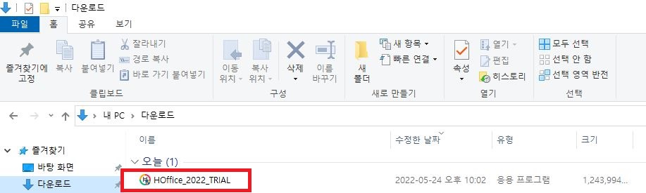 4. 다운로드한 파일 HOffice_2022_TRIAL 을 열어 설치를 시작합니다.
