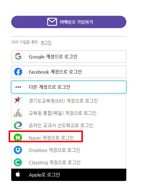 2. 사용을 위해서는 로그인을 해야 합니다. 우리는 네이버 아이디를 통한 로그인을 해보겠습니다. (네이버 아이디가 있다면 한글과 컴퓨터 홈페이지에서 회원 가입하지 않아도 한글 2010을 사용할 수 있습니다.)