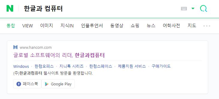 1. 검색창에 👉한글과 컴퓨터를 입력합니다.